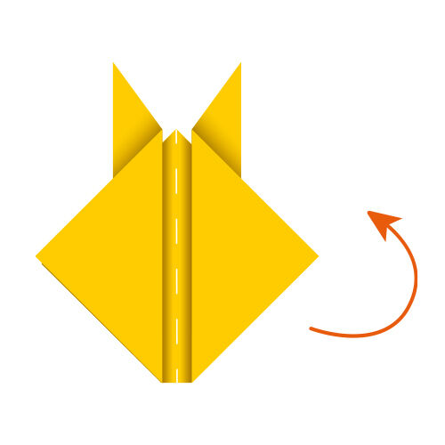 Plooi ook de rechterhelft naar boven in een hoek van 45°. Tip: lijm de losse papierrandjes achteraan vast, zo behoudt je paaskonijntje mooi zijn vorm.